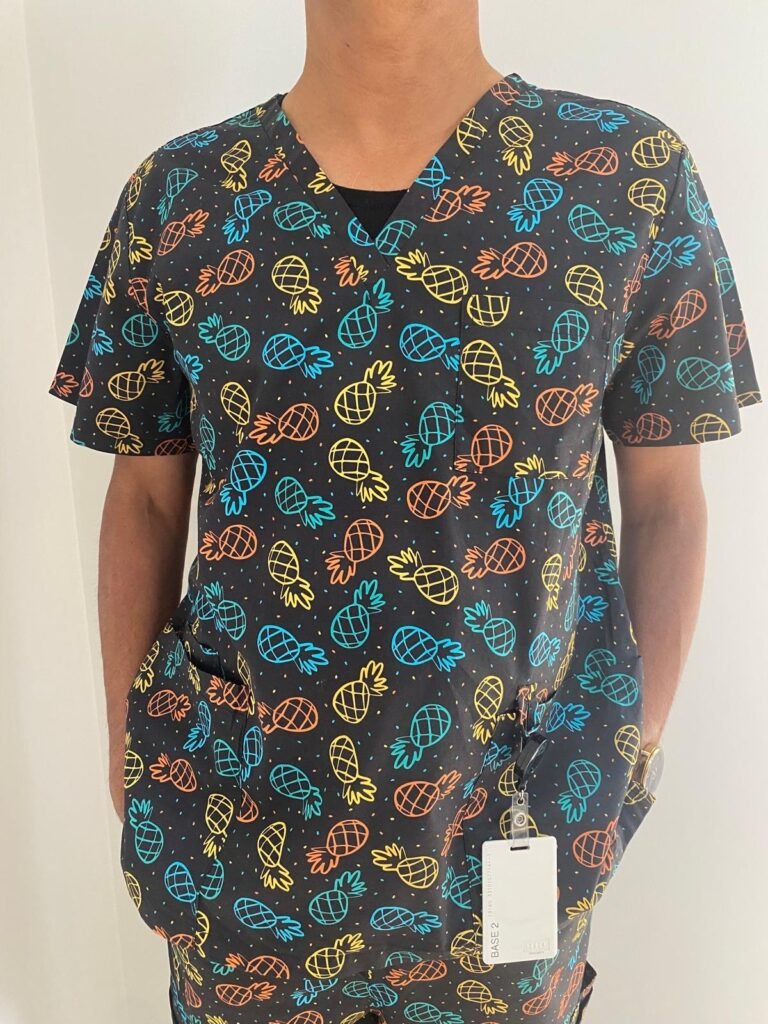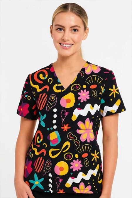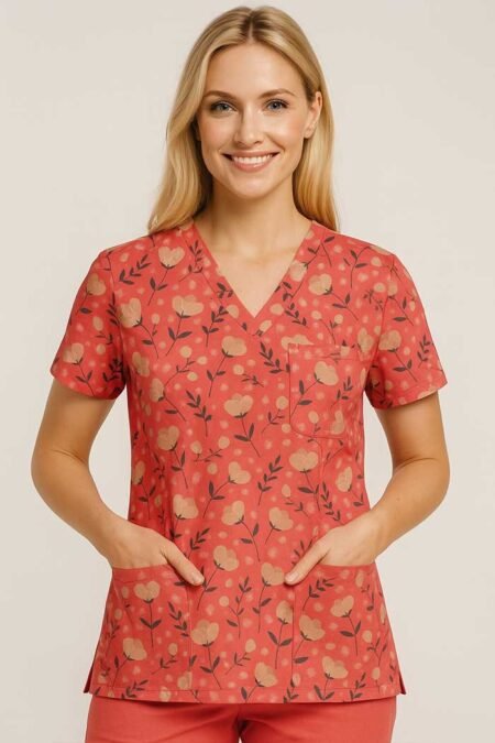 Rated 5 out of 5So comfortable to wear and true to size. Vibrant designs and good quality material. So satisfiedBy Maria on August 18, 2025 • Peach Pluff Scrub Top – Scrubs for Clinic & Hospital