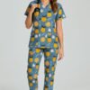 Citrus Bloom Medical Scrub Set – Blue Base with Orange Fruit Print, Soft & Breathable Fabric