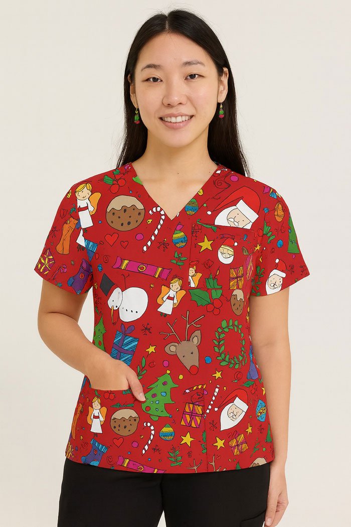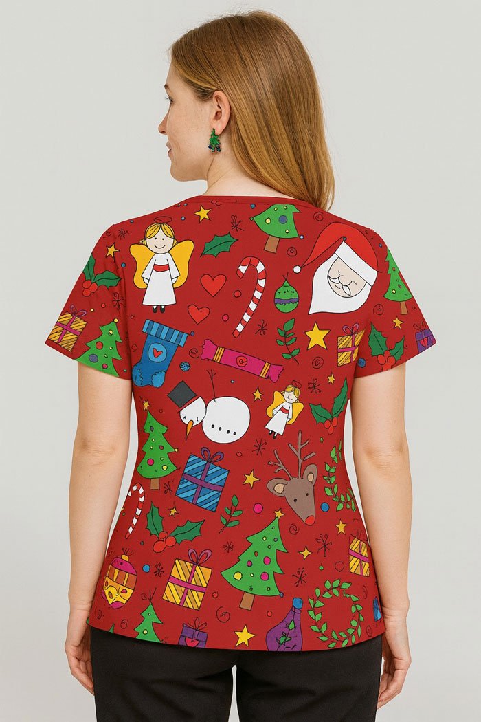 Ideal for holiday shifts, Christmas-themed events, or thoughtful medical gifts, this scrub top makes you stand out with festive flair and practicality.