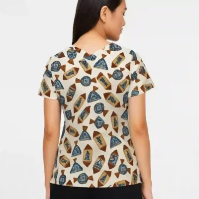 Crafted from lightweight, breathable, and durable fabric, this scrub top keeps you cool, comfortable, and festive through every shift.